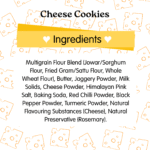 Multigrain Flour Blend (Jowar, Sattu, Whole Wheat), Jaggery, Cheese Powder, Milk Solids, Himalayan Pink Salt, Black Pepper, Red Chilli, Turmeric, Natural Preservative (Rosemary).